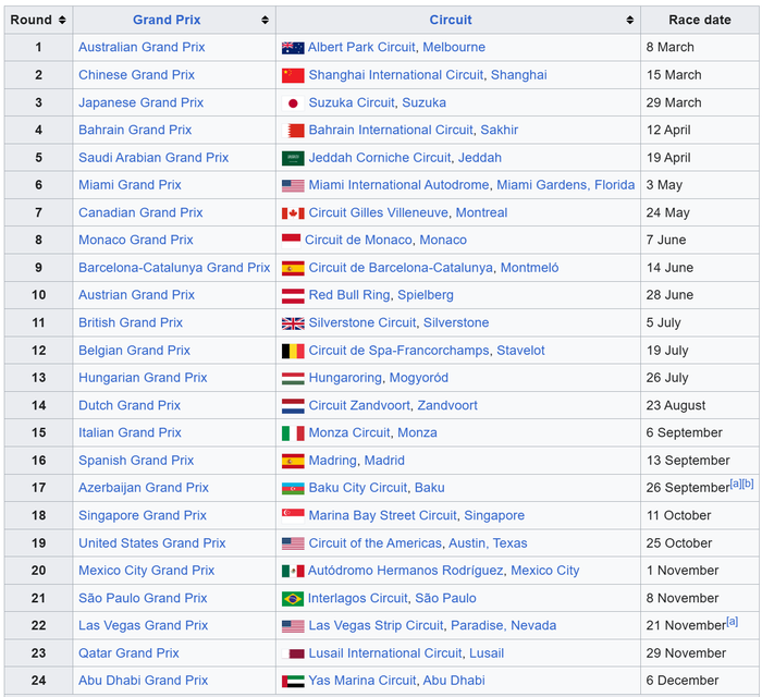24 races 2025 2024 2023 2022 2021 2020 2019, 2018, 2017, 2016, 2015,